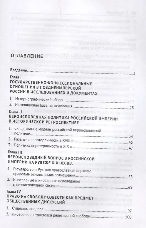 В фокусе авторского внимания находятся государственно-конфессиональные отношения начала прошлого века, когда был накоплен неоценимый опыт управления религиозным разнообразием и осуществления масштабной вероисповедной реформы, нацеленной на воплощение в жизнь свободы вероисповеданий, а затем и свободы совести. Исследование касается модернизации системы управления конфессиями в годы Первой русской революции и в период 1907–1917 гг. Привлекая обширный комплекс источников, автор характеризует содержание и ход вероисповедной реформы, позицию по вопросу религиозной свободы правительственной власти и представительных учреждений, заинтересованных церковных и общественных кругов. Анализируется воздействие реформы на практику правоприменения, выражавшуюся в допущении переходов в инославные и иноверные исповедания, в легитимации религиозного быта допускаемых государством старообрядческих и сектантских общин, в сокращении возможностей контроля российской бюрократии над религиозной жизнью неправославного населения Российской империи.