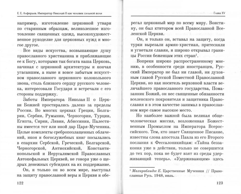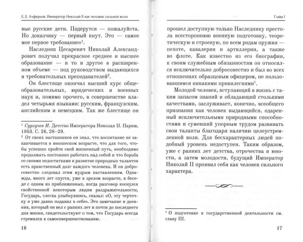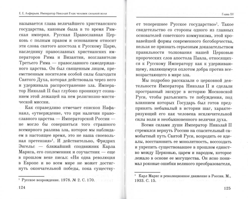 Труд Евгения Алферьева «Император Николай II как человек сильной воли», куда вошли материалы для составления жития Царя-Страстотерпца, опровергает широко распространенный миф о слабоволии Императора Николая Александровича. Автор, основываясь на достоверных исторических фактах и свидетельствах очевидцев, показывает, что пройти тот тягостный жизненный путь, каким прошёл последний Государь, достойно и смиренно мог лишь человек, обладавший не только исключительно сильной волей, но и несравненно более ценным Божиим даром — необыкновенной силой духа, возвысившейся до святости.