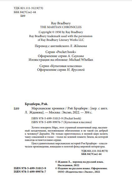 Цикл удивительных марсианских историй Рэя Брэдбери - классическое произведение, вошедшее в золотой фонд мировой литературы.