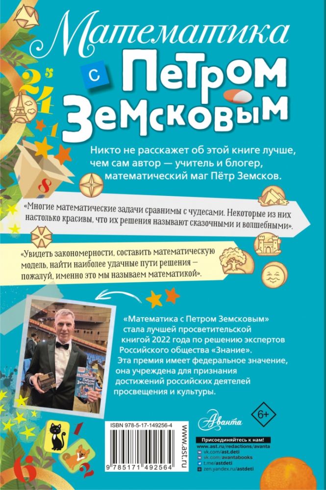 В ней описана уникальная методика изучения математических законов при помощи фокусов и трюков. Её разработал учитель математики и суперуспешный YouTube и TikTok блогер Пётр Земсков, за которым следят миллионы зрителей.