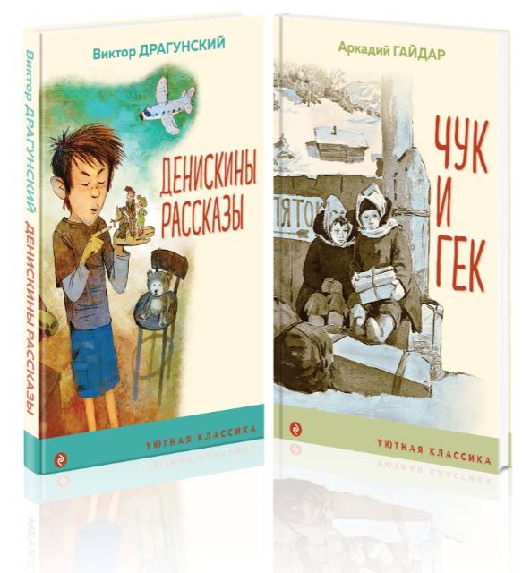 «Денискины рассказы» проиллюстрированы Александром Храмцовым, а «Чук и Гек» снабжены оригинальными иллюстрациями Давида Дубинского.