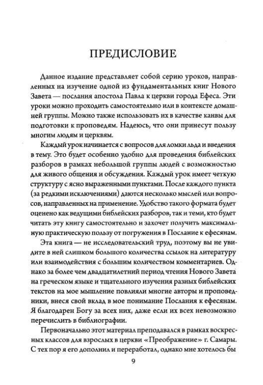 Данное издание представляет собой серию уроков, направленных на изучение послания апостола Павла к церкви города Ефеса. Эти уроки можно проходить самостоятельно или в контексте домашней группы. Можно также использовать их в качестве канвы для подготовки к проповедям. Каждый урок имеет четкую структуру с ясно выраженными пунктами. После каждого пункта даются несколько мыслей или вопросов, направленных на применение. Удобство такого формата будет оценено как ведущими библейских разборов, так и теми, кто будет читать эту книгу самостоятельно и захочет получить максимальную практическую пользу от погружения в Послание к ефесянам.