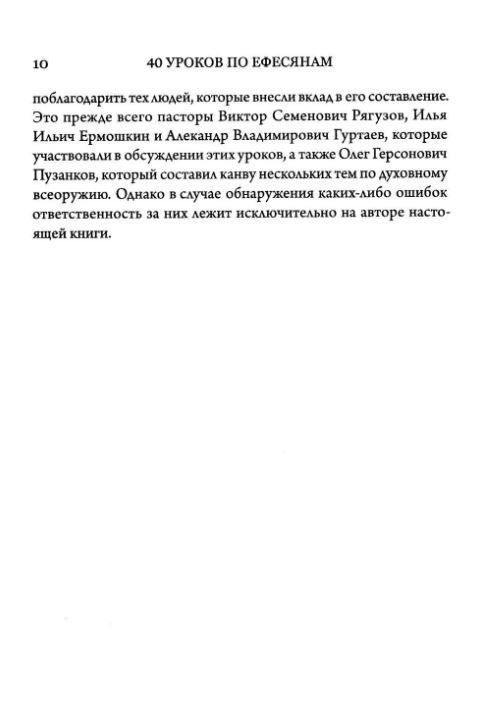 В Послании к ефесянам апостол Павел называет одну из целей служения церкви — чтобы все пришли в единство веры и познания Сына Божьего. Это предполагает, помимо прочего, необходимость совместного церковного изучения Писания, чтобы с его помощью мы шли к указанному единству, поддерживая и вразумляя друг друга. Книга Алексея Прокопенко является добрым подспорьем на этом пути. Она побуждает не просто изучать Библию, но делать это именно вместе. Очень надеюсь, что она вдохновит многих глубоко исследовать Послание к ефесянам, и не только самому, но и совместно со своими братьями и сестрами. Это обязательно поспособствует большей общей зрелости детей Божьих.