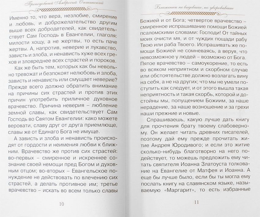 Преподобный Амвросий Оптинский занимает особое место среди Оптинских старцев. Его любовь, дар рассуждения и простота привлекали к нему и обычный народ, и монашествующих, и интеллигенцию, и всяк в словах батюшки находил себе требуемое - утешение, разрешение "неразрешимых" вопросов, ответы на тревожащие душу беспокойства и недоумения. В предлагаемом издании собраны советы из писем преподобного на вопросы, так или иначе затрагивающие три христианских добродетели - веру, надежду и любовь. И как указание пути спасения духовным чадам выбран нами заголовок книги; "Верь, надейся и люби..."