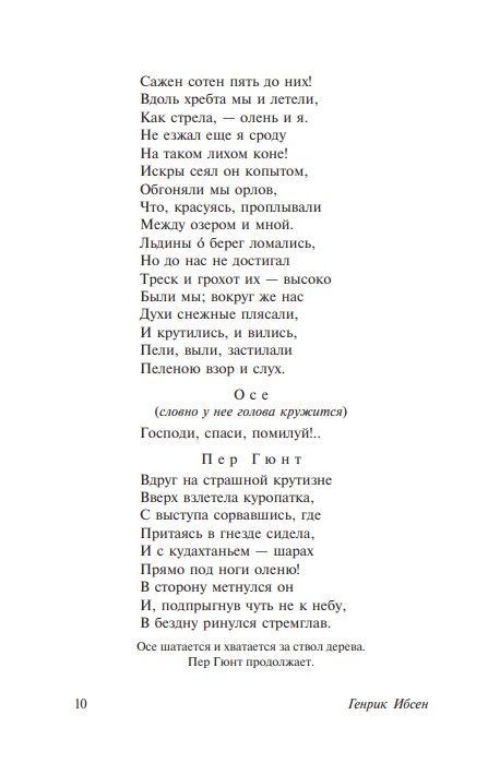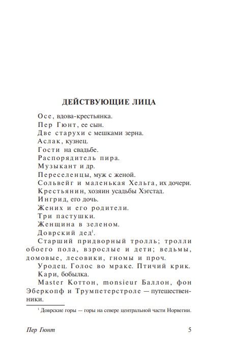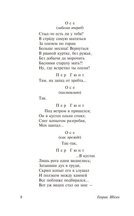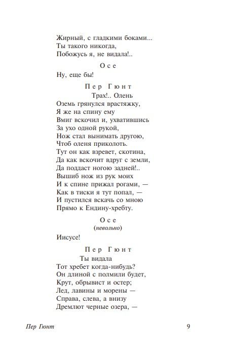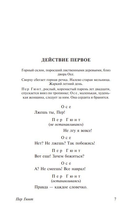 Драматическая поэма "Пер Гюнт", с его причудливым сочетанием реальности и мистики, социальной сатирой и философскими темами поиска себя.