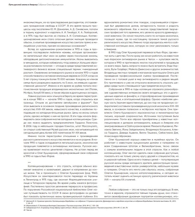 Издание является результатом кропотливой работы ведущих российских и зарубежных специалистов по изучению и описанию коллекции и открывает широкой публике ценные страницы русского иконописного наследия и духовной культуры. Вы узнаете удивительную судьбу русских икон в XX веке, их извилистый путь в Европу и Америку, отражающий многие драматические события прошлого столетия. И, конечно, погрузитесь в столь притягательный мир коллекционирования. Как знать — возможно, эта книга станет первым шагом к вашей личной коллекции.