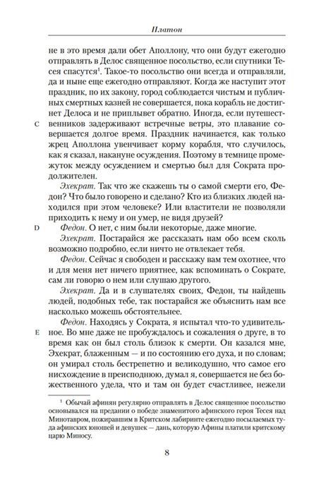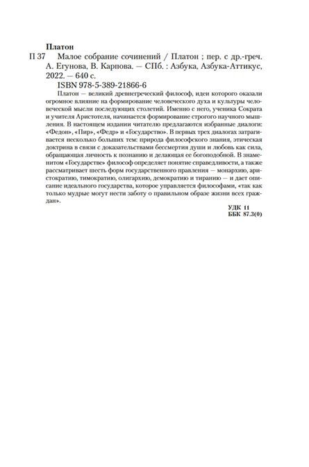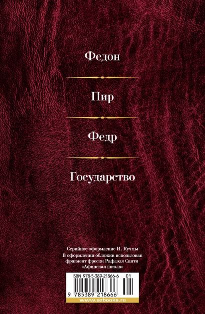 Платон — великий древнегреческий философ, идеи которого оказали огромное влияние на формирование человеческого духа и культуры человеческой мысли последующих столетий. Именно с него, ученика Сократа и учителя Аристотеля, начинается формирование строгого научного мышления. В настоящем издании читателю предлагаются избранные диалоги: «Федон», «Пир», «Федр» и «Государство». В первых трех диалогах затрагивается несколько больших тем: природа философского знания, этическая доктрина в связи с доказательствами бессмертия души и любовь как сила, обращающая личность к познанию и делающая ее богоподобной. В знаменитом «Государстве» философ определяет понятие справедливости, а также рассматривает шесть форм государственного правления — монархию, аристократию, тимократию, олигархию, демократию и тиранию — и дает описание идеального государства, которое управляется философами, «так как только мудрые могут нести заботу о правильном образе жизни всех граждан».