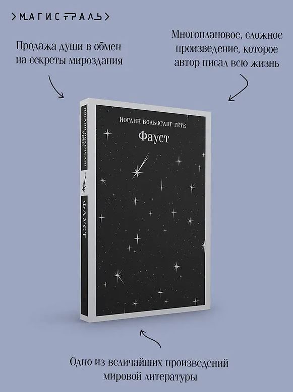 Легенда об ученом Иоганне Фаустусе, продавшем Мефистофелю душу в обмен на его обещание открыть секреты мироздания, показать бездны ада и рая, обогатить новым знанием, давно волновала людское воображение. Так доктор Фауст, которому щедро приписывались всевозможные чудеса, стал героем немецкого народа. Великий чернокнижник был персонажем театральных представлений, к его образу обращались многие авторы, но именно под пером Гёте эта история стала одной из подлинных вершин мировой литературы. «Фауст» Гёте задает загадки, и уже не одно поколение читателей пытается их разгадать.