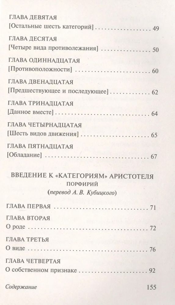 В сборник входят также "Введение" Порфирия, античного философа-неоплатоника, который разъясняет все основные понятия учения о логике в "Категориях", и логический трактат Аристотеля "Об истолковании".