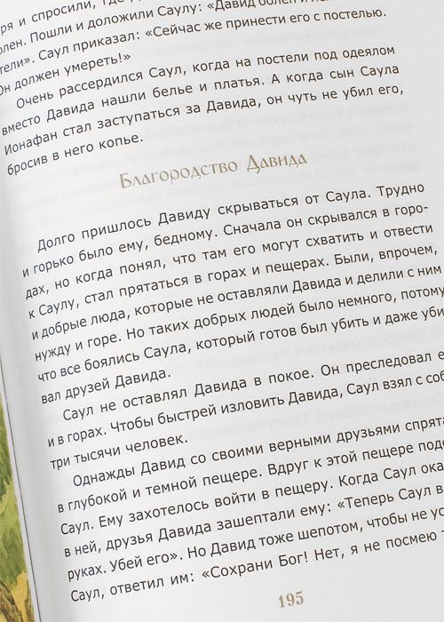 «Библия для детей», подготовленная по тексту книги протоиерея Александра Соколова «Священная история в простых рассказах для чтения в школе и дома», представляет собой издание большого формата, напечатанное на высококачественной офсетной бумаге, содержащее красочные иллюстрации художника Анны Дувановой.