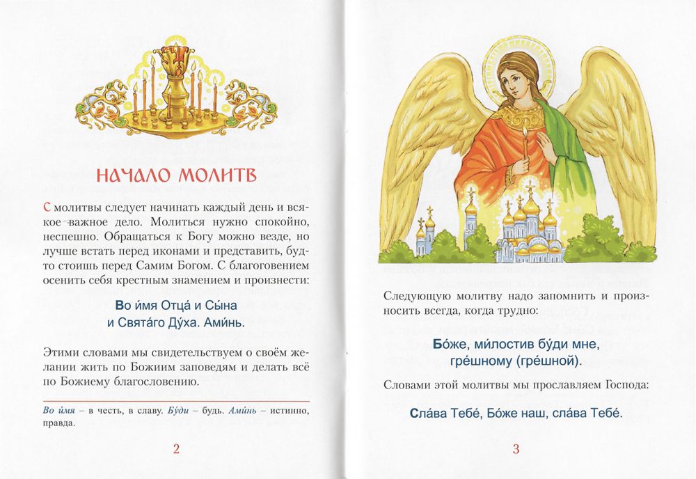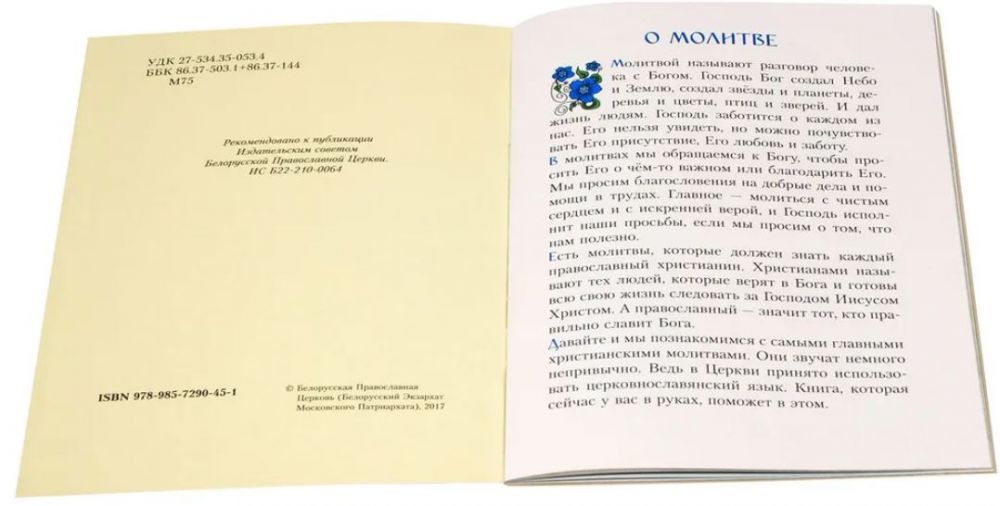 Книга содержит различные молитвы - краткие, начальные, в течение дня на разные нужды, сокращенные для восприятия ребенка утреннее и вечернее молитвенное правила.