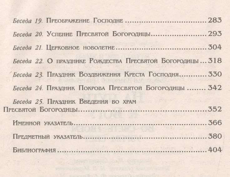 Книга известного проповедника, доктора богословия, профессора Минской духовной академии и преподавателя Института теологии имени Мефодия и Кирилла Белорусского государственного университета протоиерея Владимира Башкирова, перу которого принадлежат около 100 изданий и публикаций, продолжает проект "На пути к Богу: беседы о вере и жизни". Первое издание проекта - вышедшая в 2013 году книга "На пути к Богу. Слава Тебе, показавшему нам свет!". .В предлагаемом цикле бесед автор в доступной и увлекательной форме рассказывает о праздниках и днях памяти святых, начиная от Пасхи Христовой до Введения во храм Пресвятой Богородицы. К циклу тематических бесед прилагаются именной и предметный указатели, а также библиографический список.