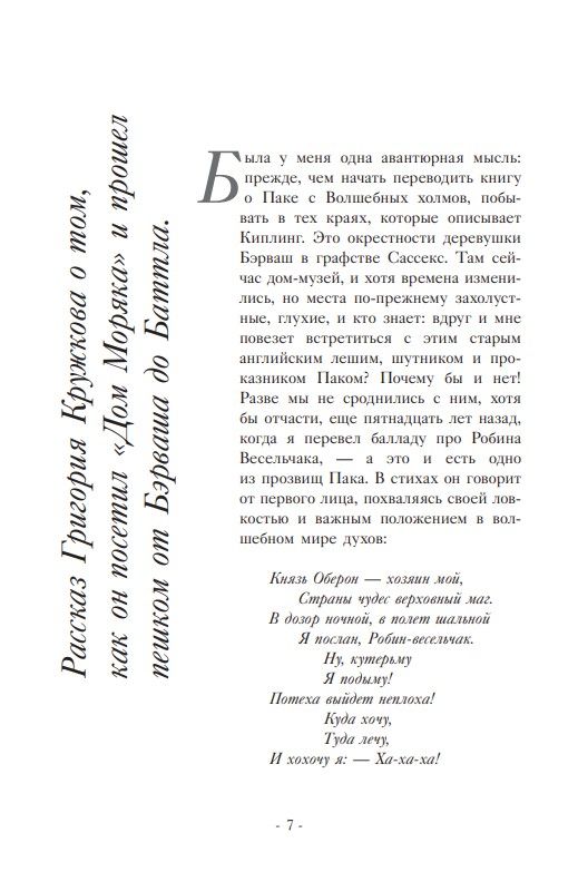 Книга нобелевского лауреата по литературе Редьярда Киплинга «Пак с волшебных холмов» уже больше века радует читателей всех возрастов, погружая их в атмосферу старой, сказочной Англии.