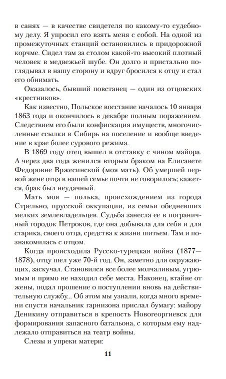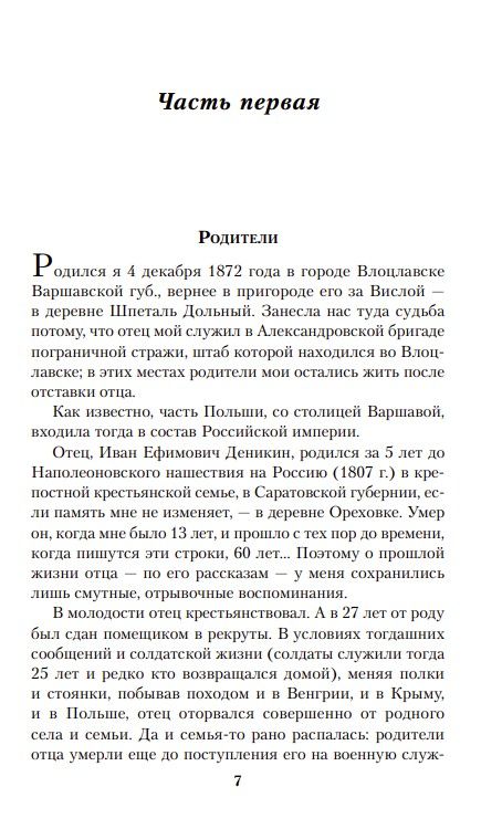 Деникину довелось участвовать в Русско-японской и Первой мировой войнах. Свой боевой опыт и впечатления от войны генерал тщательно зафиксировал на страницах своих воспоминаний, но закончить описание последней войны Российской империи генералу уже не довелось. «Путь русского офицера» был издан уже после кончины генерала, став не только последней, но и самой важной книгой военачальника.