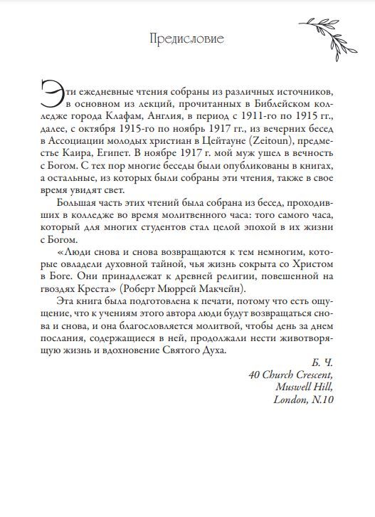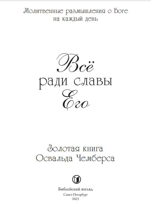 «Всё ради славы Его» — настоящая классика ежедневных молитвенных размышлений. Несколько поколений верующих христиан находят вдохновение на страницах этой книги. Сила откровений и глубина размышлений потрясают. «Всё ради славы Его» надо прочитать по крайней мере один раз, а прочитав один раз, вы будете возвращаться к ней снова и снова.