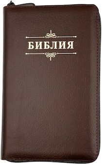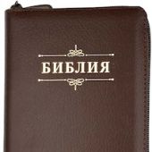 Дизайн "Библия с вензелем", кожаный переплет на молнии, индексы-указатели, цвет коричневый, золотой обрез, 2 закладки,