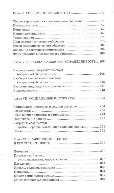 Анализируются основные идеи и проблемы современной социальной философии. Открытое и закрытое общества противопоставляются как те два полюса, между которыми разворачивается человеческая история. Разные цивилизации движутся в своем развитии от одного полюса к другому, но нельзя сказать, что один из этих полюсов является светом, а другой тенью. Линейно-стадиальный подход к истории объединяется с цивилизационным подходом. Особое внимание уделяется современному обществу и исторически обозримым перспективам его развития, социальным институтам, факторам устойчивости общества и его динамики, понятиям свободы, равенства и справедливости. Философская антропология и философия социального познания рассматриваются как разделы социальной философии.