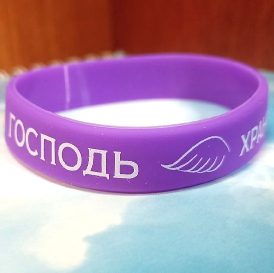 Браслет силиконовый фиолетовый с логотипом «Господь хранит верных»