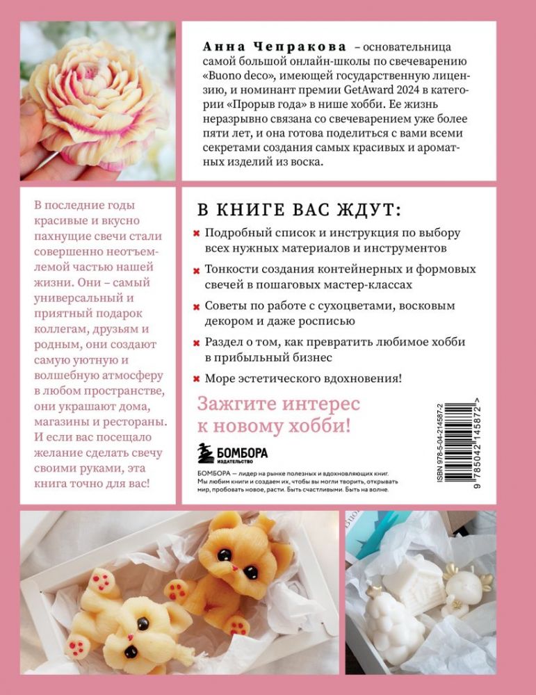 В последние годы красивые и вкусно пахнущие свечи стали совершенно неотъемлемой частью нашей жизни. Они — самый универсальный и приятный подарок коллегам, друзьям и родным, они создают самую уютную и волшебную атмосферу в любом пространстве, они украшают дома, магазины и рестораны. И если вас посещало желание сделать свечу своими руками, эта книга точно для вас!