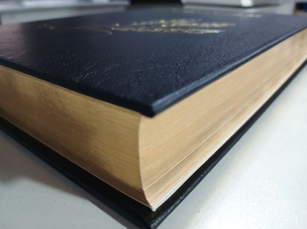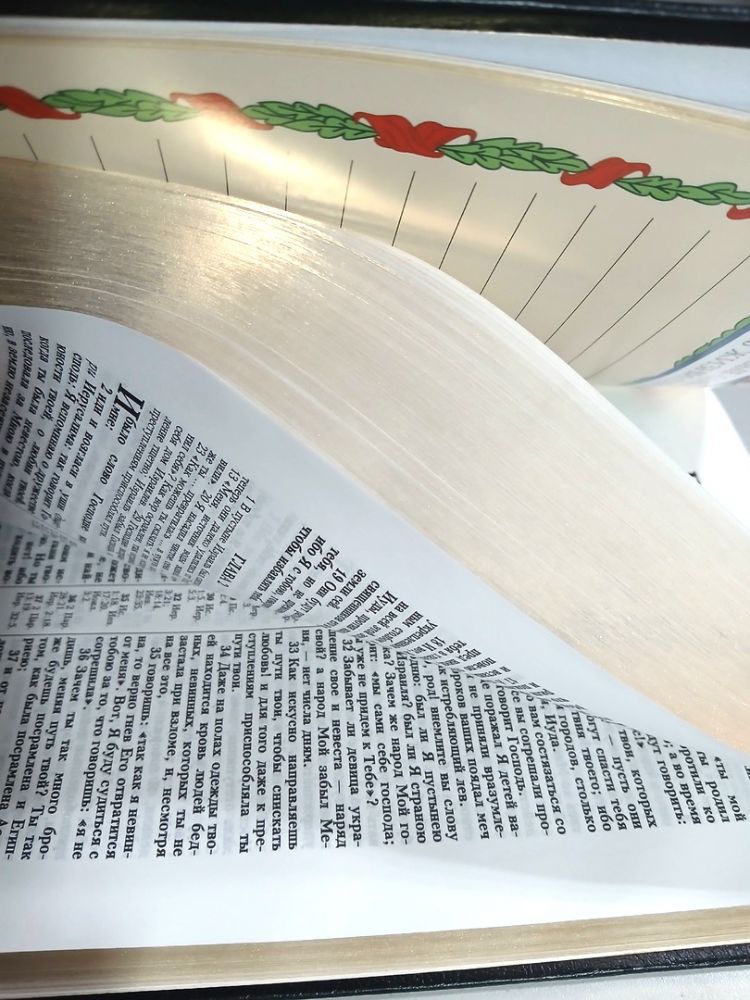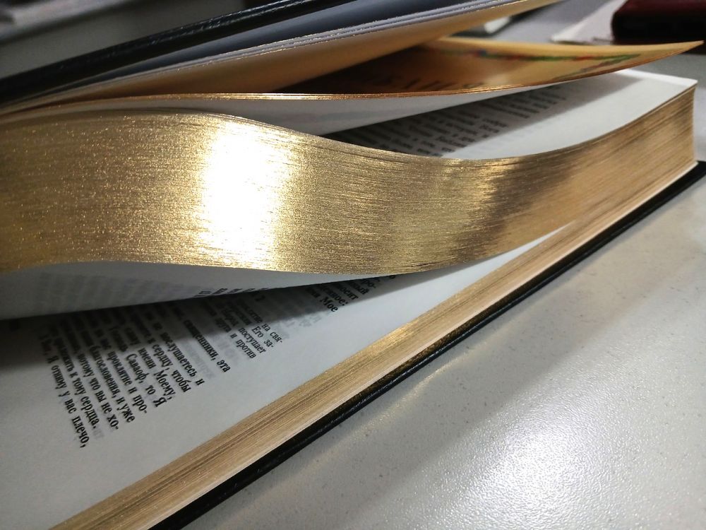 Переплет твердый, золотой обрез, две закладки-ляссе.