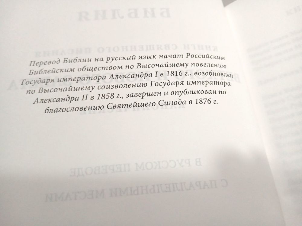 В настоящем издании текст Синодального перевода 1876 г. сверен с еврейским текстом Ветхого Завета и греческим текстом Нового Завета для устранения неточностей, допущенных при подготовке предыдущих изданий канонической русской Библии.