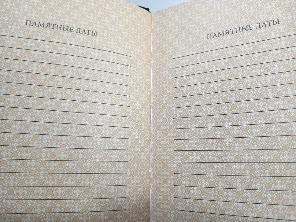 Цвет обложки черный, переплет кожа, две закладки-ляссе.