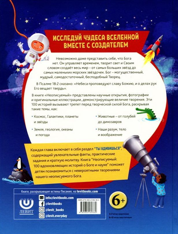 Книга «Неописуемый» увлекает читателей через просторы космоса и в глубины самой их души. Современная наука позволит детям рассмотреть творение ближе, чем когда-либо, и каждый шаг на этом пути приблизит их к Богу, Который даровал жизнь всему сущему.