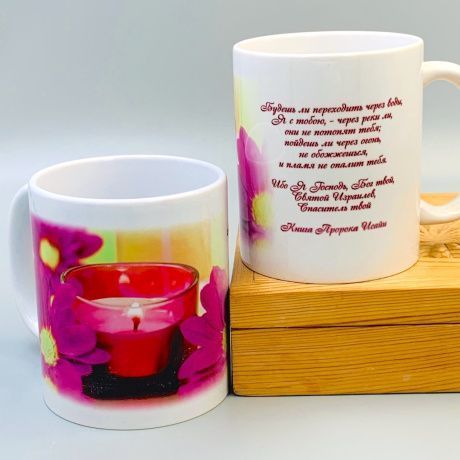 "Будешь ли переходить через воды - Я с тобою, - через реки ли они не потопят тебя" Размер: 95 мм. высота, диаметр 80 мм. Белая внутри.