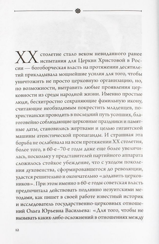 XX столетие стало в России веком невиданного ранее испытания для Церкви Христовой — богоборческая власть на протяжении десятилетий прикладывала мощнейшие усилия для того, чтобы уничтожить не просто церковную организацию, но, по возможности, вытравить саму веру из среды народной жизни.