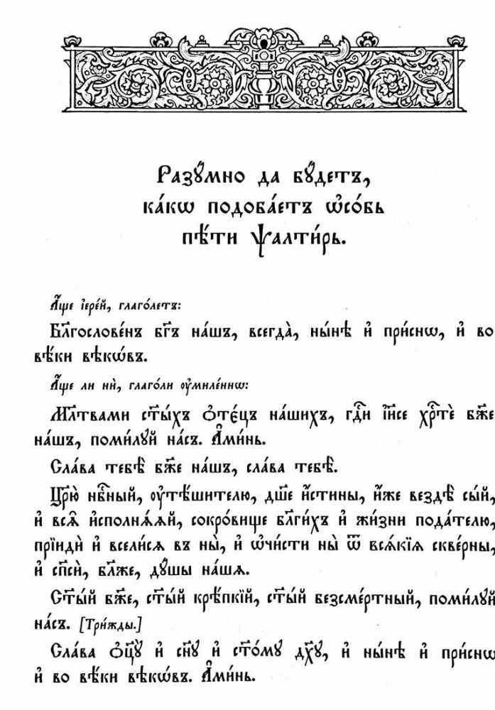 Книга царя и пророка Давида занимает особое место в Священном Предании Православной Церкви. Святитель Василий Великий говорит о ней, что Псалтирь больше и выше всех книг, потому что она Бога славит вместе с Ангелами и прогоняет и уязвляет бесов. Недаром Псалтирь с древности использовалась для молитвы храмовой и домашней, и сейчас она является основой православного богослужения.