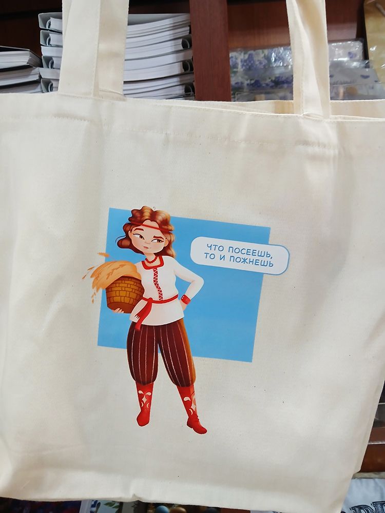 Сумка-шопер холщовая белая «Что посеешь...». 37х36 см, ручки 30 см (Андрианова)