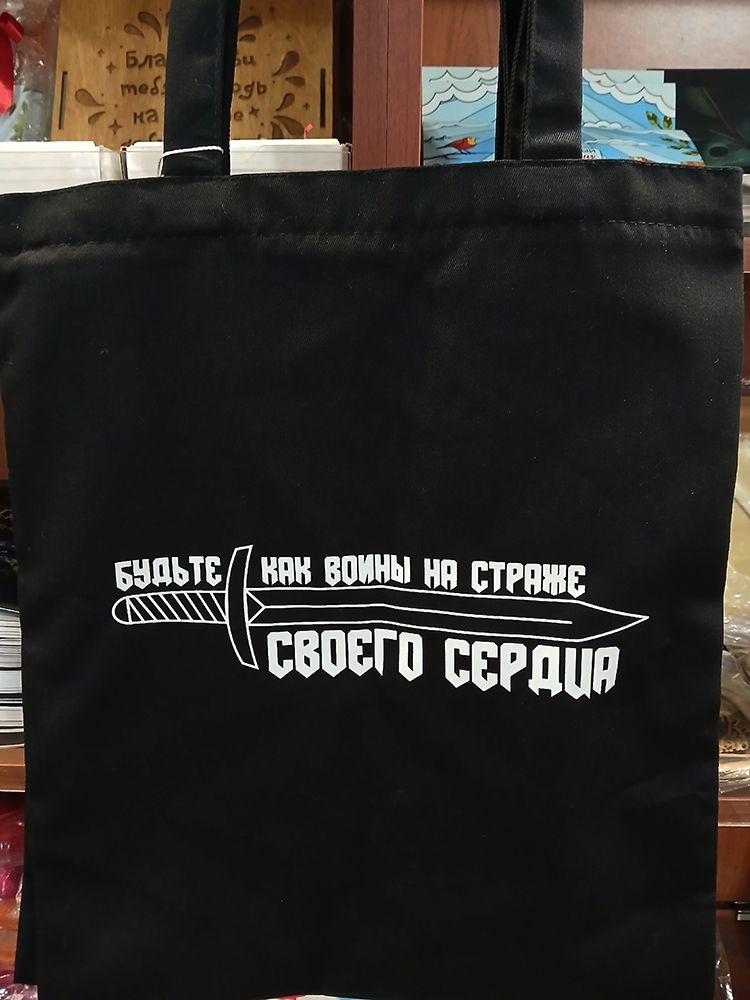 Сумка-шопер холщовая черная на молнии «Меч (Будьте как воины)».