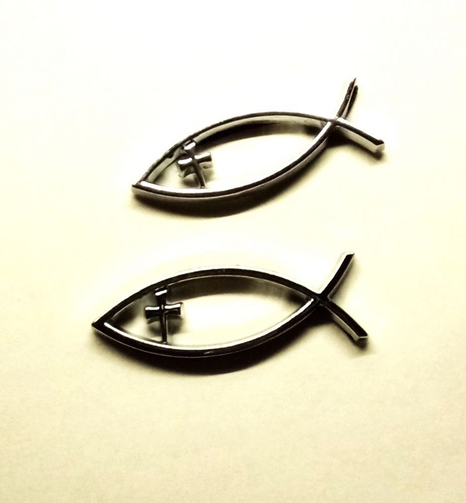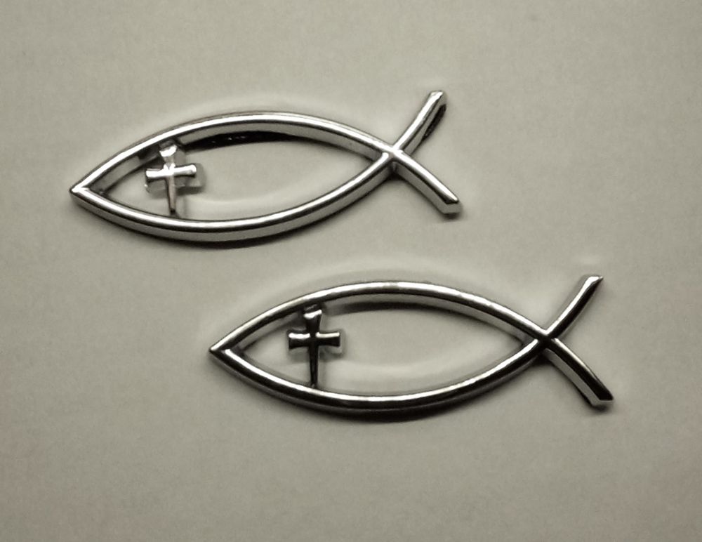 Наклейка «Рыбка с крестом изящная», пластик 5Х1,7 см, толщ. 3 мм, серебро