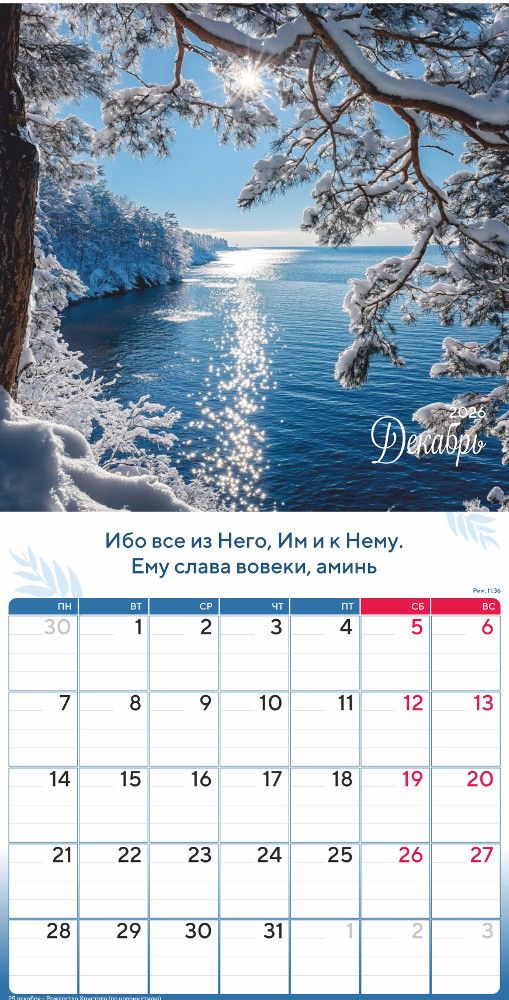 Календарь на 2026 год «Природа славит Творца» – это календарь-планинг для всей семьи, позволит сделать записи на каждый день. А иллюстации живописной природы создадут особенное умиротворение в каждом доме.