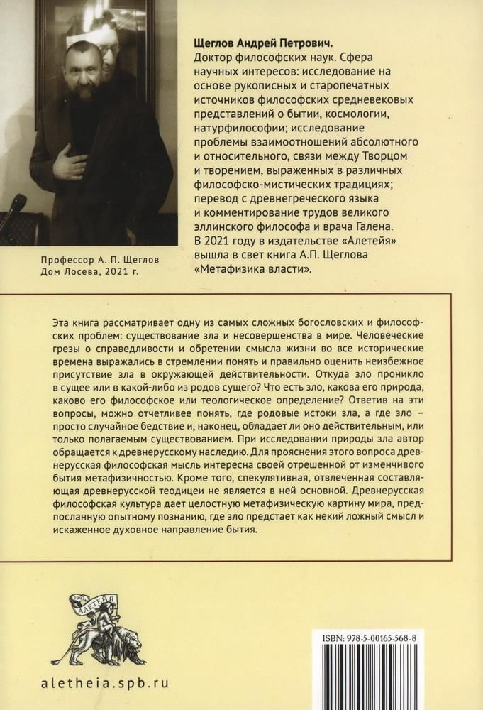 Эта книга рассматривает одну из самых сложных богословских и философских проблем: существование зла и несовершенства в мире. Человеческие грезы о справедливости и обретении смысла жизни во все исторические времена выражались в стремлении понять и правильно оценить неизбежное присутствие зла в окружающей действительности. Откуда зло проникло в сущее или в какой-либо из родов сущего? Что есть зло, какова его природа, каково его философское или теологическое определение? Ответив на эти вопросы, можно отчетливее понять, где родовые истоки зла, а где зло - просто случайное бедствие и, наконец, обладает ли оно действительным, или только полагаемым существованием. При исследовании природы зла автор обращается к древнерусскому наследию. Для прояснения этого вопроса древнерусская философская мысль интересна своей отрешенной от изменчивого бытия метафизичностью. Кроме того, спекулятивная, отвлеченная составляющая древнерусской теодицеи не является в ней основной. Древнерусская философская культура дает целостную метафизическую картину мира, предпосланную опытному познанию, где зло предстает как некий ложный смысл и искаженное духовное направление бытия.