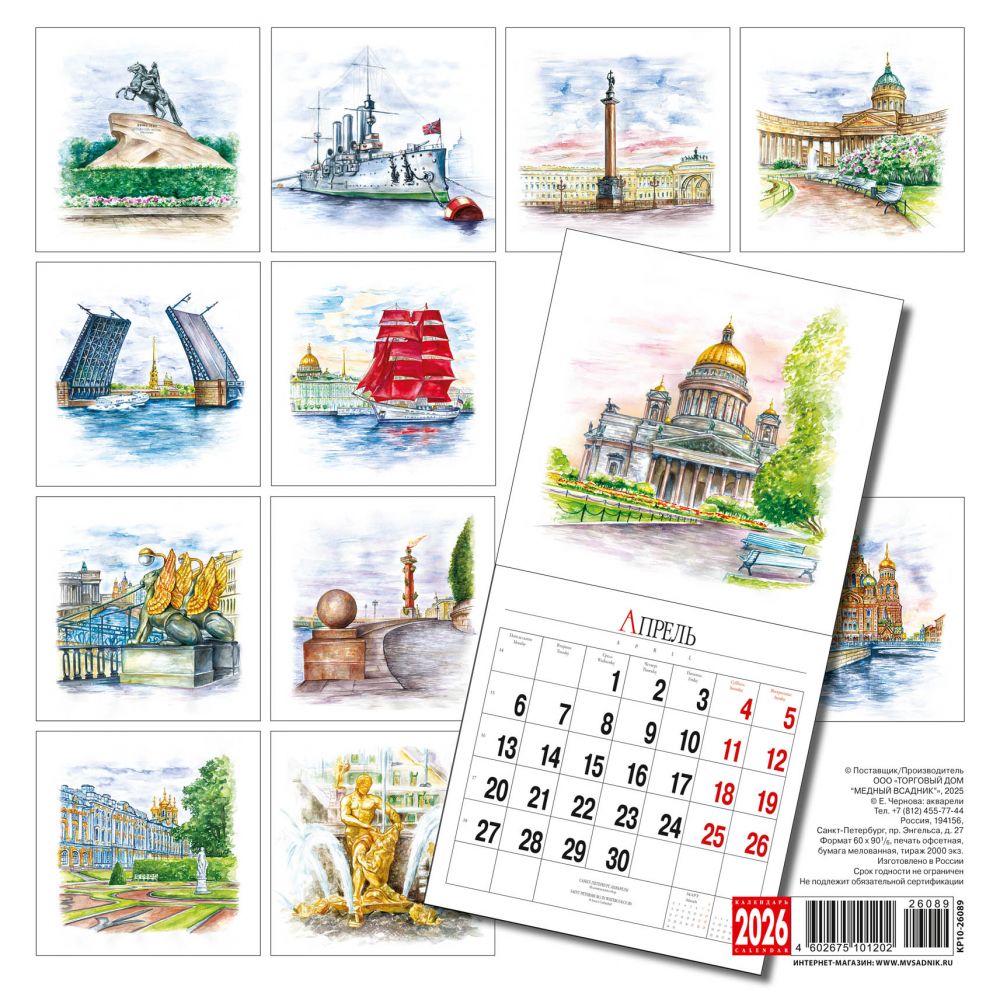 Настенный календарь "Санкт-Петербург в акварелях" на 2026 год - лучшее, что можно приобрести на память о посещении великого города, независимо от того, в какое время года это случилось.