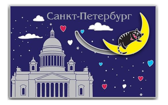 Магнит металлический динамический «Санкт-Петербург. Кот на Луне»