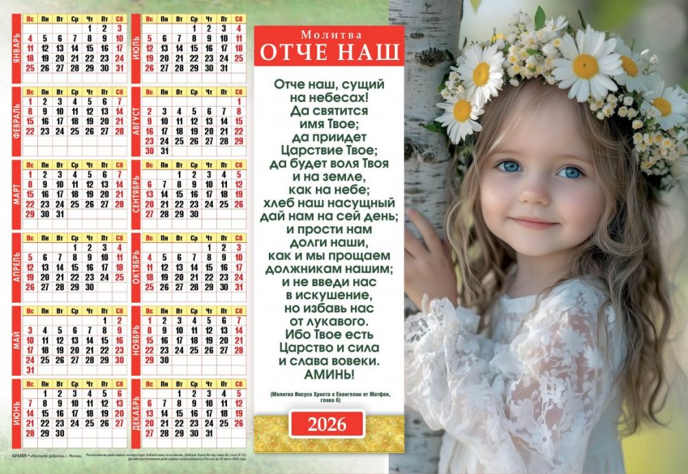 Листовой календарь "Молитва Отче Наш" на 2026 год наполнит каждый день глубоким духовным смыслом. Слова одной из самых известных и почитаемых молитв христианства, размещенные на страницах календаря, помогут укрепить веру, обрести смирение и жить в согласии с Божьими заповедями в течение всего года.
