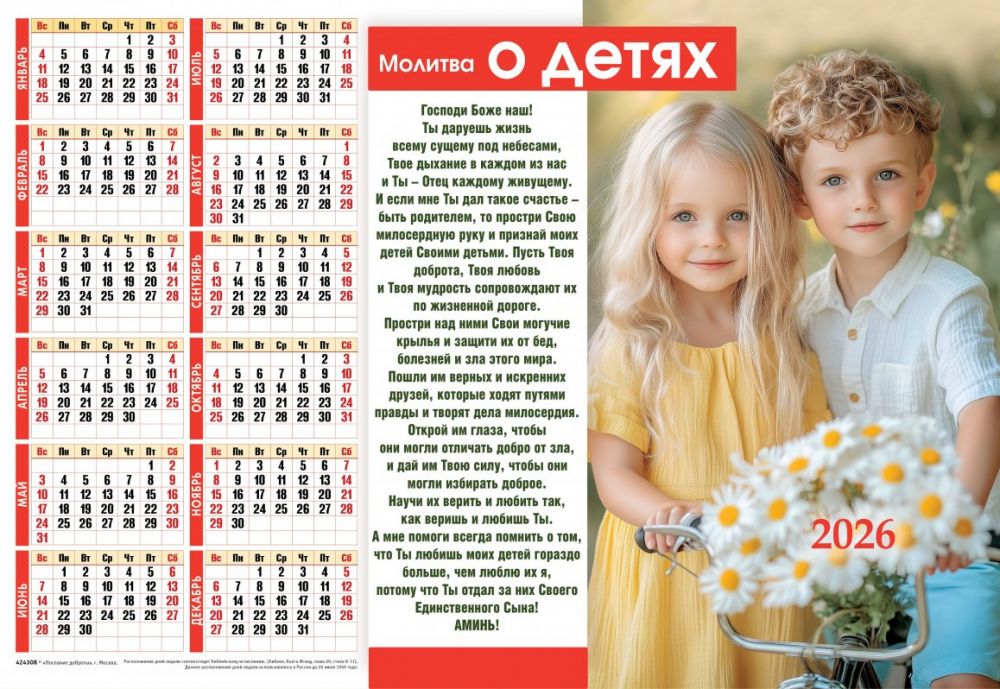 Листовой календарь "Молитва о детях" на 2026 год наполнит каждый день родительской любовью и заботой. Слова молитвы о благополучии и защите детей, размещенные на страницах календаря, помогут укрепить связь с вашими близкими, подарят спокойствие и надежду на их счастливое будущее в течение всего года.