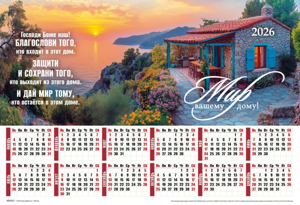 Листовой календарь "Мир вашему дому!" на 2026 год наполнит каждый день пожеланиями благополучия и спокойствия для вашего дома и близких. Добрые слова, размещенные на страницах календаря, создадут атмосферу уюта и гармонии на протяжении всего года.