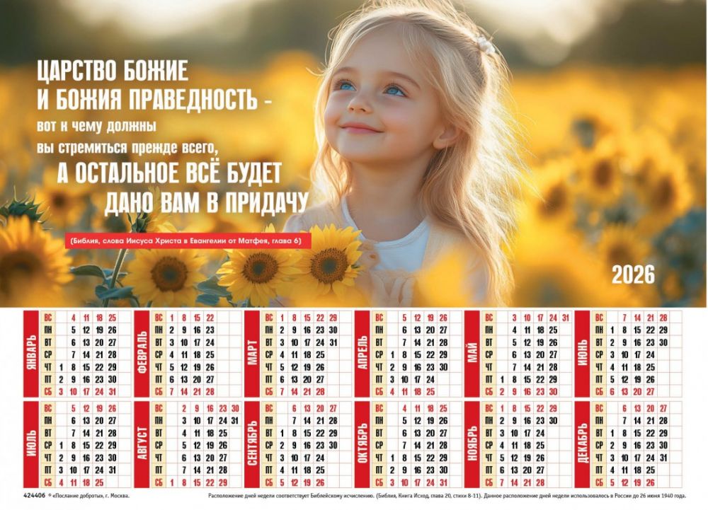 Листовой календарь "Царство Божие и Божия праведность" на 2026 год напомнит о духовных приоритетах в жизни. Слова Иисуса Христа, размещенные на страницах календаря, будут вдохновлять стремиться к высшим ценностям, веря, что остальное приложится.