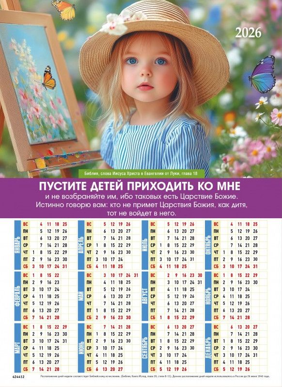 Листовой календарь "Пустите детей приходить ко Мне" на 2026 год наполнит каждый день чистотой и искренностью детской веры. Слова Иисуса Христа, размещенные на страницах календаря, будут вдохновлять на принятие Царствия Божия с детской открытостью и доверием в течение всего года.
