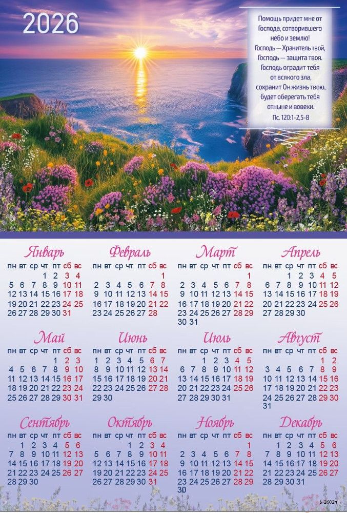 Календарь настенный листовой на 2026 год «Господь Хранитель твой»