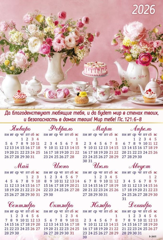 Календарь листовой 25*34 на 2026 год «Бог да совершит и утвердит»