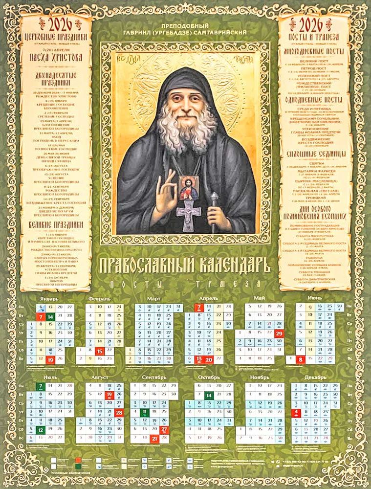 Календарь листовой православный на 2026 год «Преподобный Гавриил (Ургебадзе)»