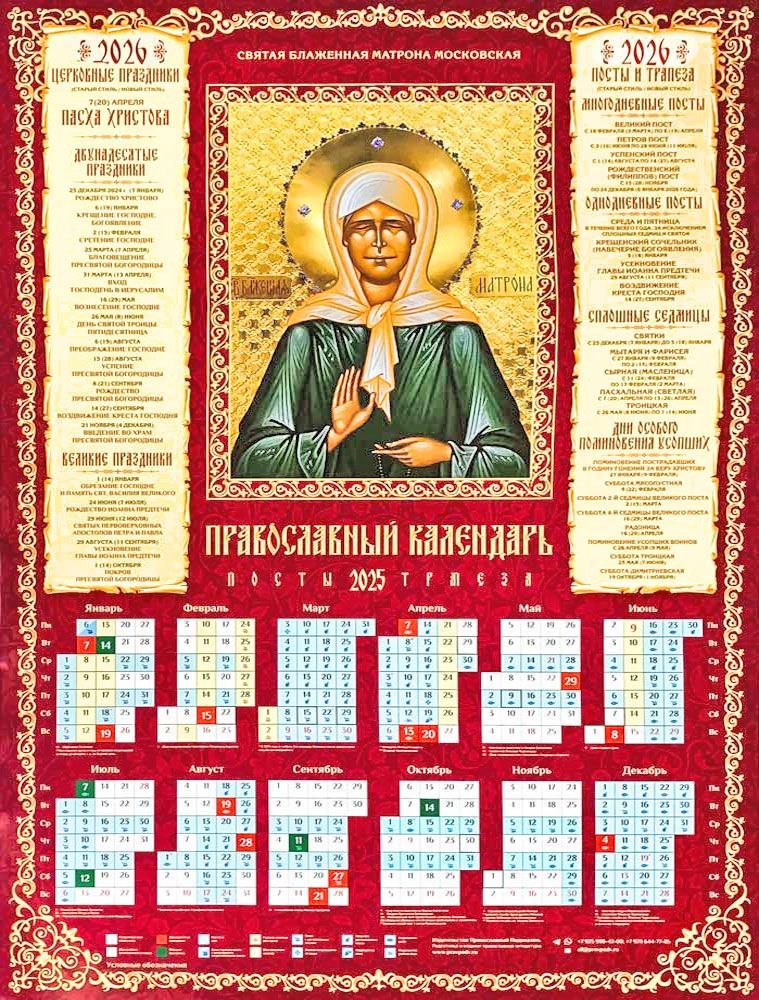 Календарь листовой православный на 2026 год «Блаженная Матрона Московская»