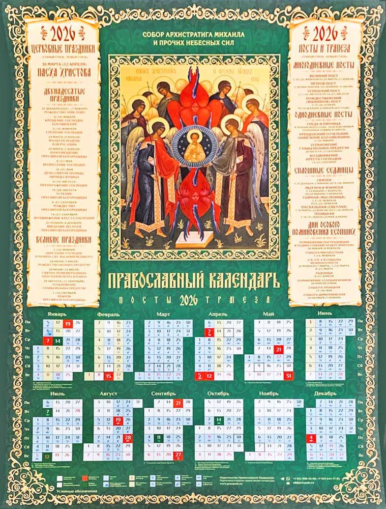 Календарь листовой православный на 2026 год «Собор Архистратига Михаила»