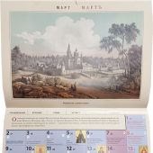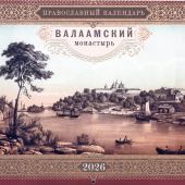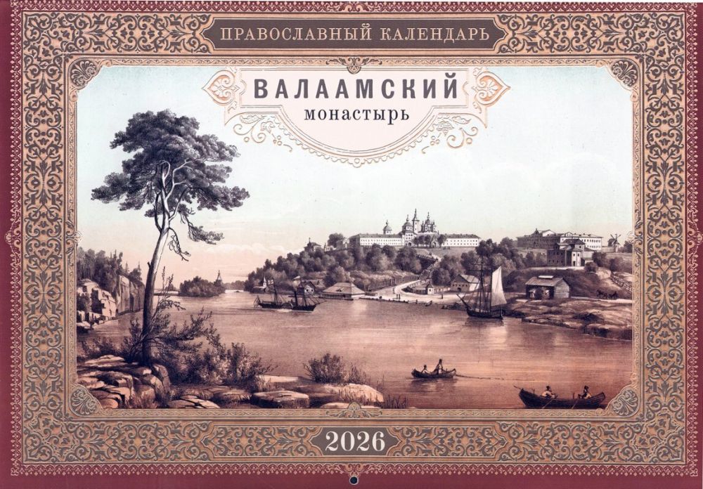 Календарь православный на 2026 г. Настенный, перекидной на скрепке посвящен Валаамскому монастырю. На каждом развороте представлено собрание видов местностей острова Валаам, нарисованных с натуры художником И. И. Балашовым, изданное усердием валаамского настоятеля игумена Дамаскина с братией, 1863 год.