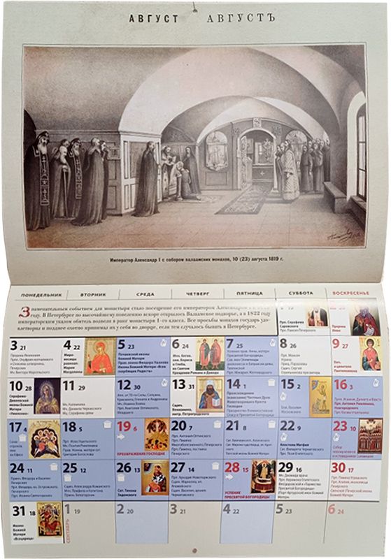 Четко обозначены праздничные дни, дни постов и дни особого поминовения усопших.