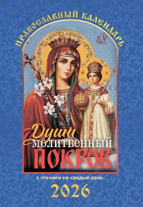 Календарь «Души молитвенный покров» на 2026 год создан в помощь православному христианину, стремящемуся научиться молитвенному деланию. Молитва — сердцевина духовной жизни и, по слову преподобного Иоанна Лествичника, «мать добродетелей». Поэтому так важно ежедневно анализировать свою молитвенную жизнь, учась у тех, кто преуспел в этом делании — святых и подвижников благочестия. Необходимо также постоянно совершенствовать свое понимание молитвословий и богослужебных текстов. Читатель найдет в издании наставления и уроки молитвы от пастырей, святых отцов и почитаемых старцев, толкования известных молитвословий, объяснение богослужебных текстов, молитвы святых и подвижников, духовные стихи о молитве, проповеди, ответы православных пастырей на часто задаваемые вопросы; а также молитвы, обращенные к святым и Божией Матери, тропари и кондаки двунадесятых праздников.